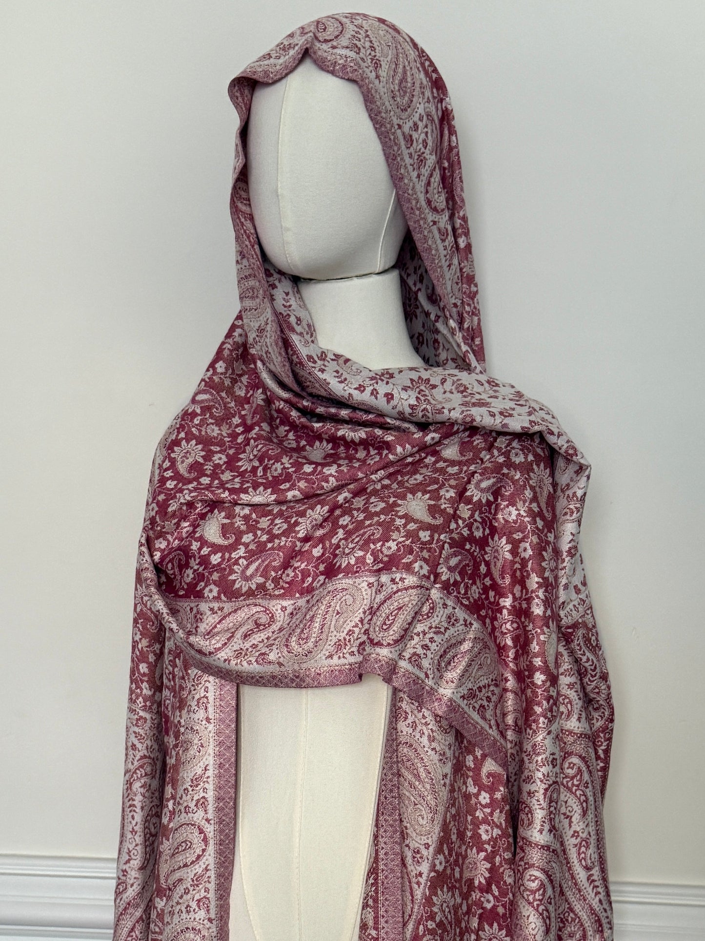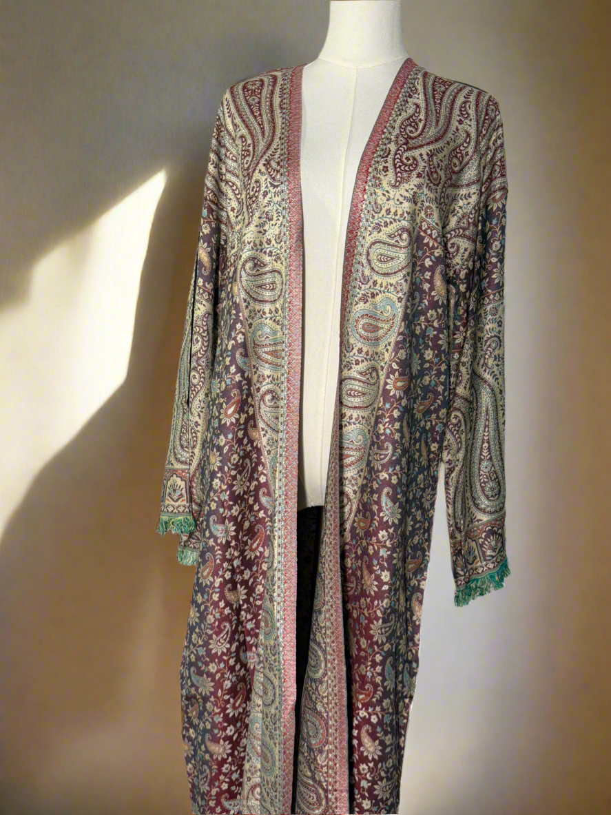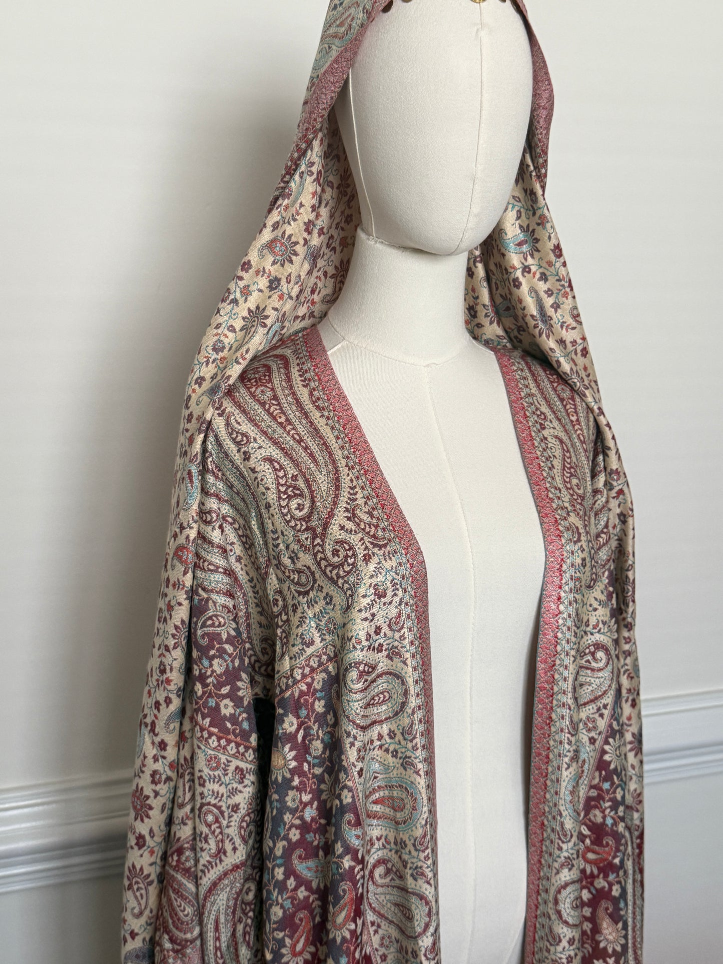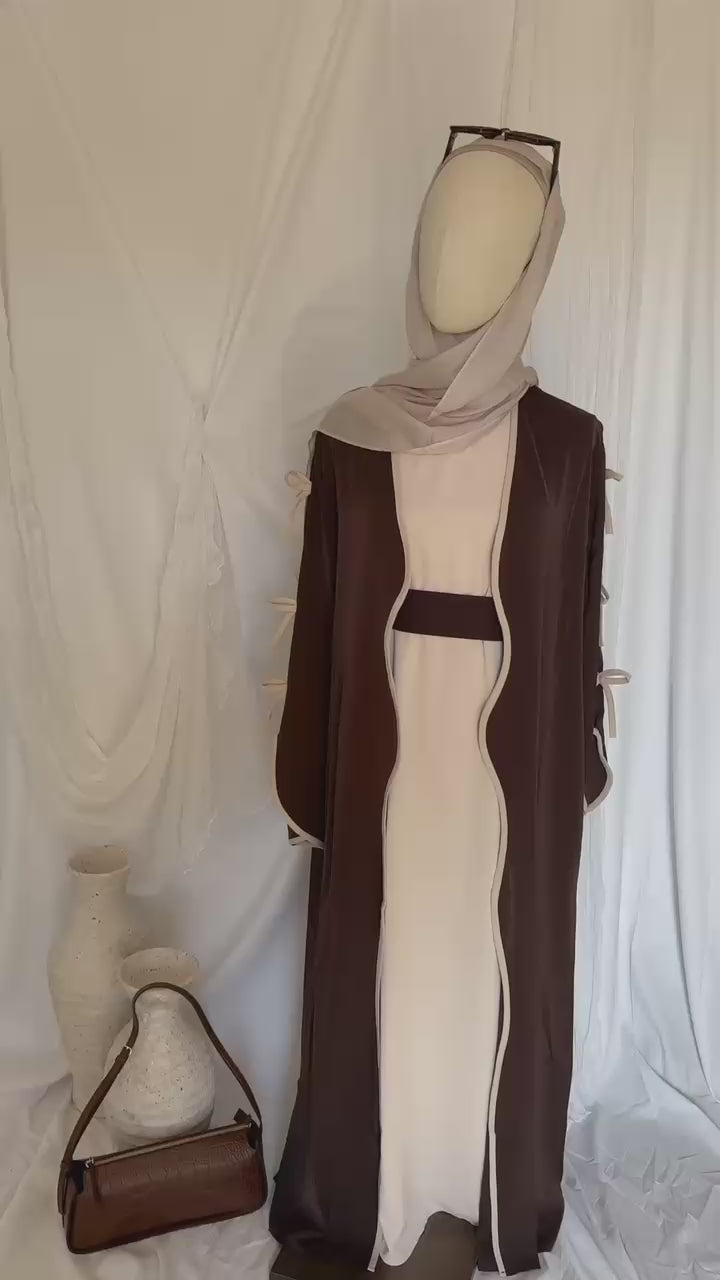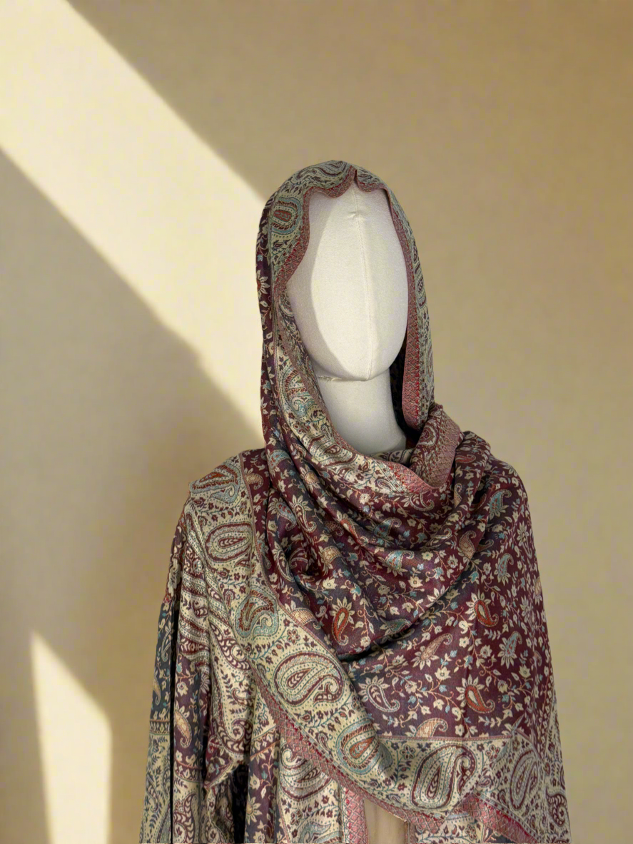 a richly detailed pashmina abaya designed for effortless elegance, complete with a matching hijab.